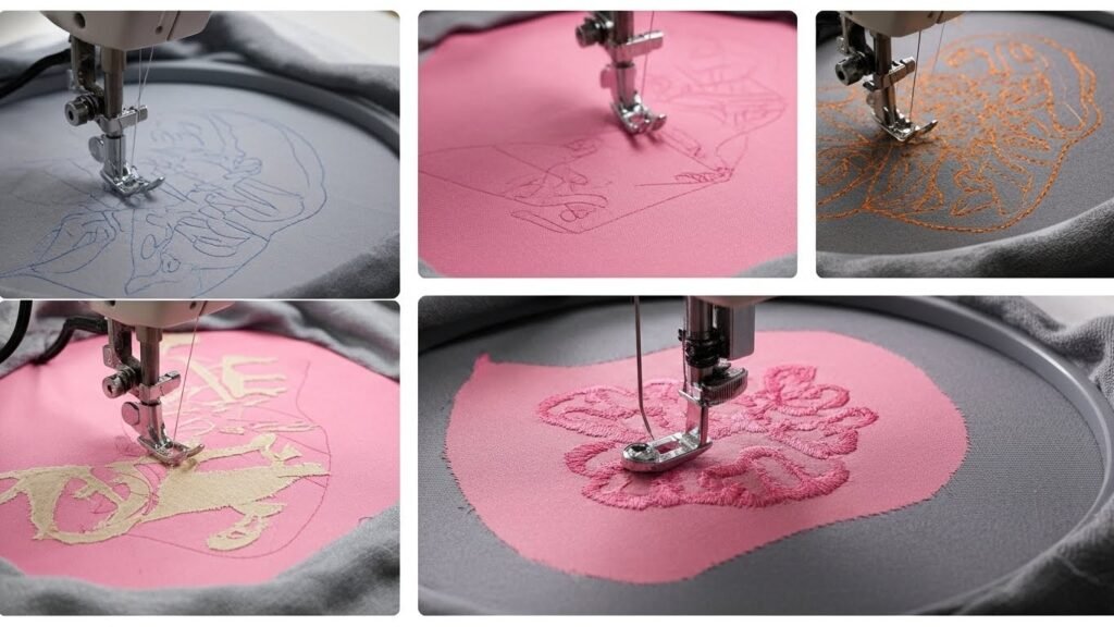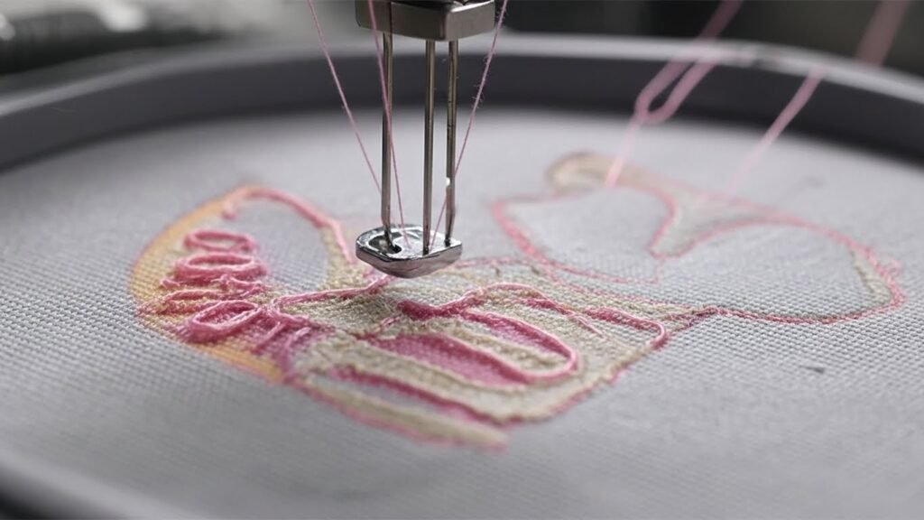 Appliqué embroidery is a sewing technique in which pieces of fabric are sewn onto a base fabric to create a design. The fabric pieces can be cut into any shape or size, and they can be made from different types of fabric